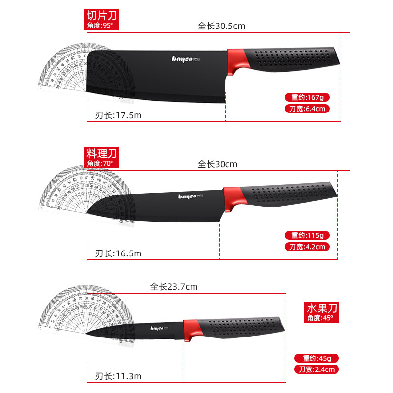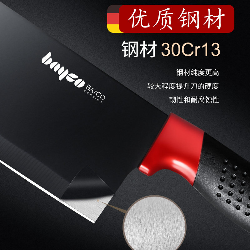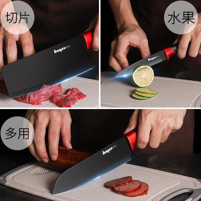 Baiger Cutter Sets Group Black Edge Series Craft Stainless Steel Kitchen Slicing Knife Cuisine Cut Vegetable Water Fruit Knife Tool Holder