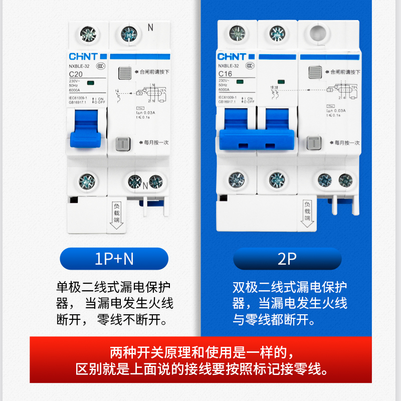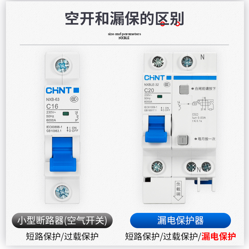 Chint leakage protector with air switch circuit breaker 2p empty open 220v three-phase leakage protection 32a household 63a