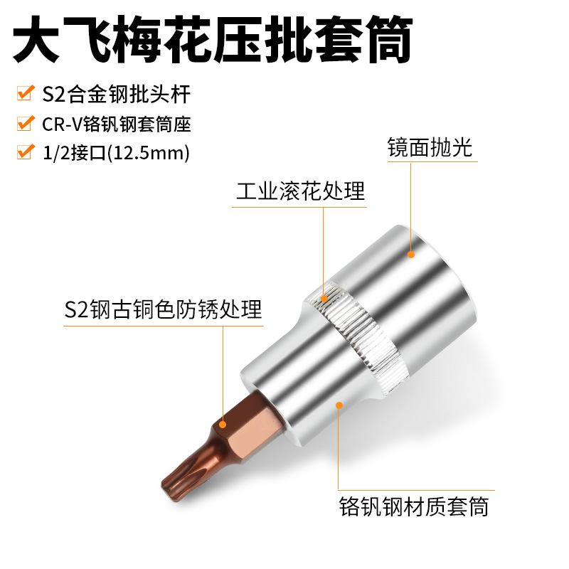 1 2 large flying plum pressure batch sleeve suit electric screwup inner hexagonal sleeve head S2 lengthened screwing tool sleeve head