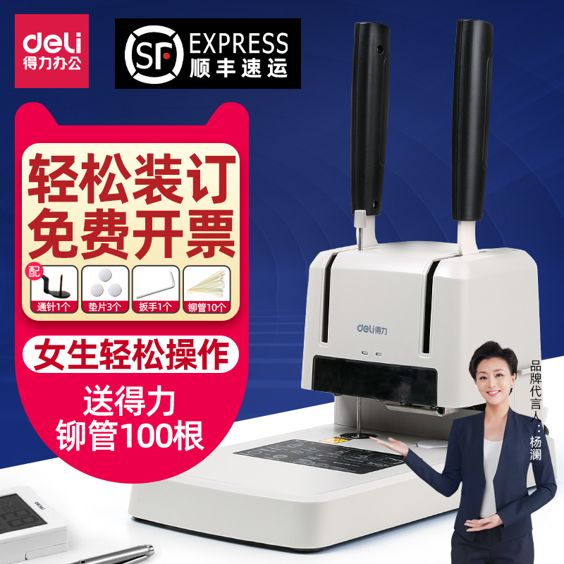 Deli 3888 voucher binding machine financial accounting voucher special file bill punching machine hot melt riveting tube manual small simple accounting voucher binding machine financial binding machine