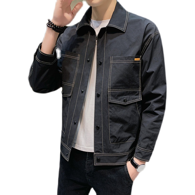 Spring and Autumn Tide Brand Men's Jacket Casual Solid Color Tooling Thin Denim Shirt Jacket Jacket Versatile Lapel Top