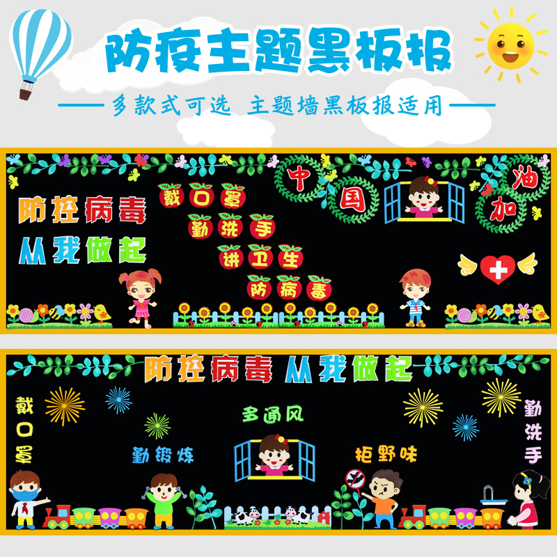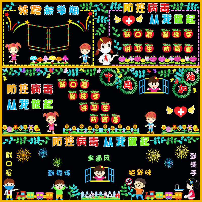 Fight against the prevention and control outbreak Topic Black plate News Decorative Wall Stickers Primary School Classroom Placement Class culture Wall Kindergarten
