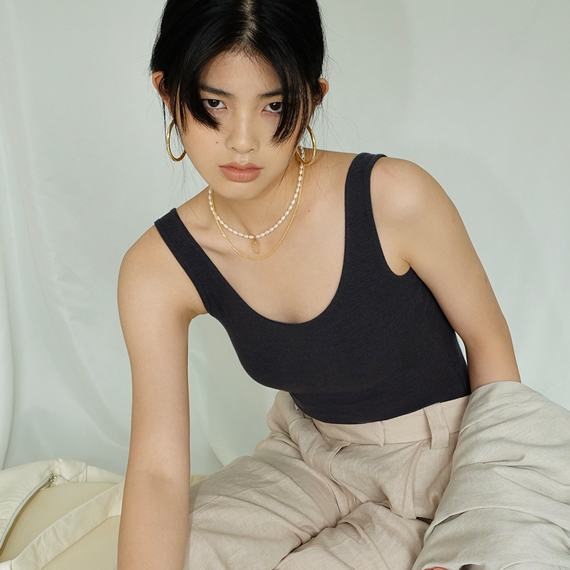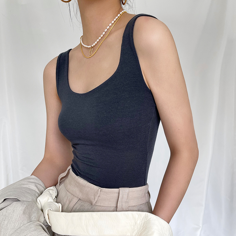 MADEINAM all-match B hoard sheep wool stretch knit U-neck layered pleated bottoming vest