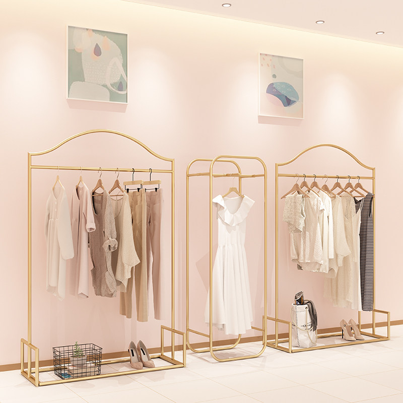 High-end women's clothing store floor double-deck light luxury display frame hanging clothes shelves gold
