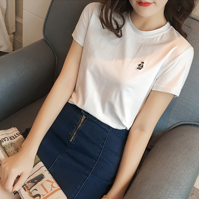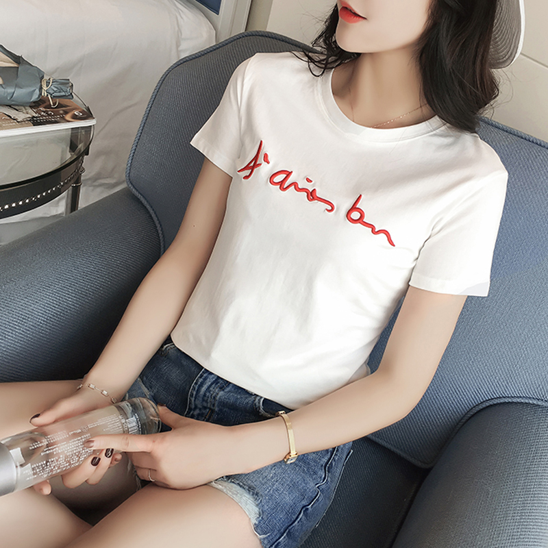 Hong Kong Tidal Truffle Pure Cotton Short Sleeve T-shirt Woman 2021 Summer New Korean version blouse to fix bottom half sleeve T-shirt
