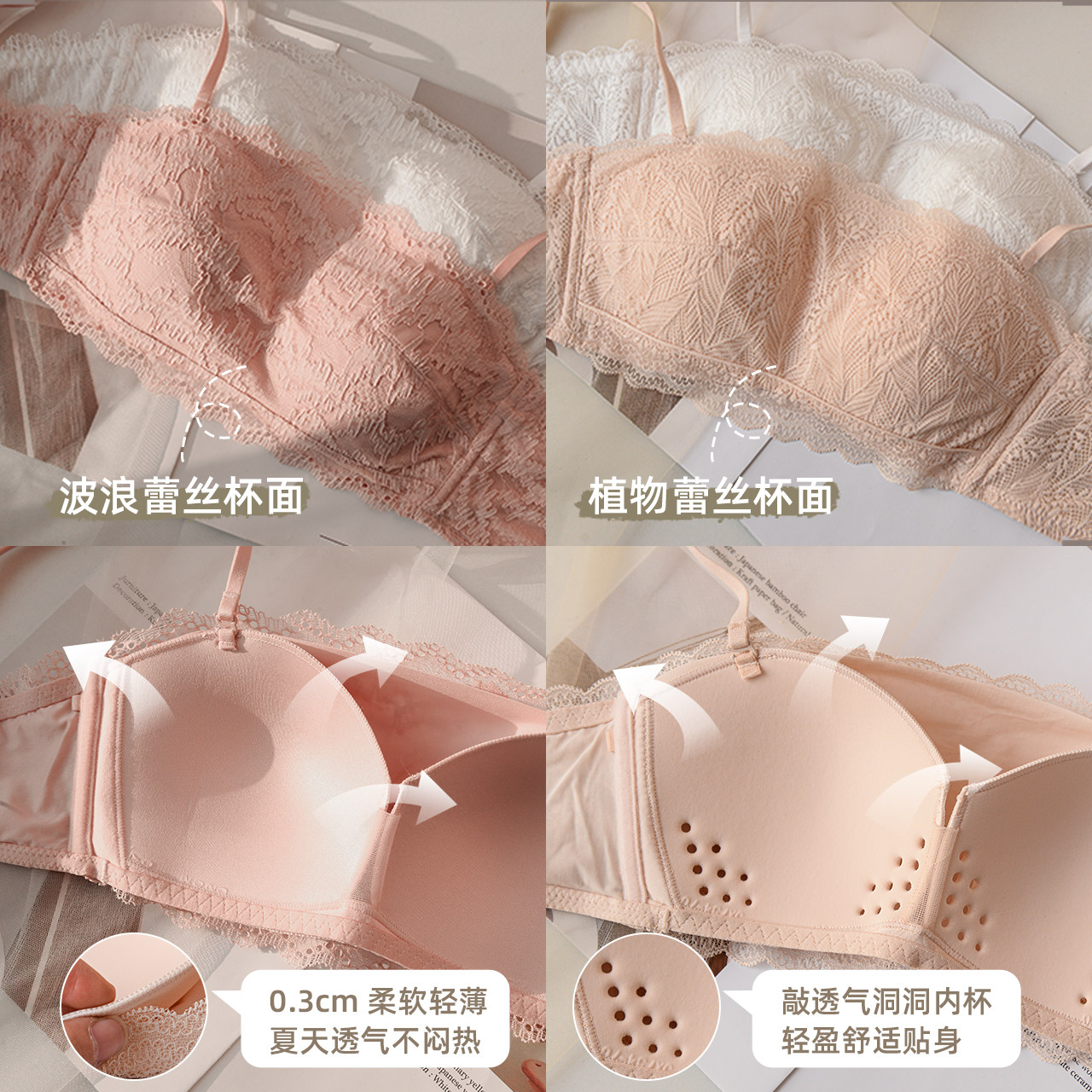 Thin section Black Lace Little Cute Style No Shoulder Strap Women's Underwear New 2020 Exploits Without Steel Ring Sexy Bra Hood