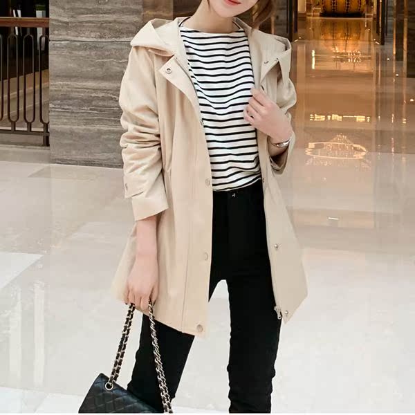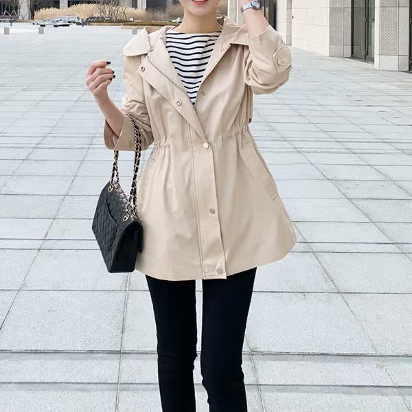 Hooded Chic Collar Windbreaker Jacket Drawstring Waist Casual All-match Slim Korean Autumn New Style