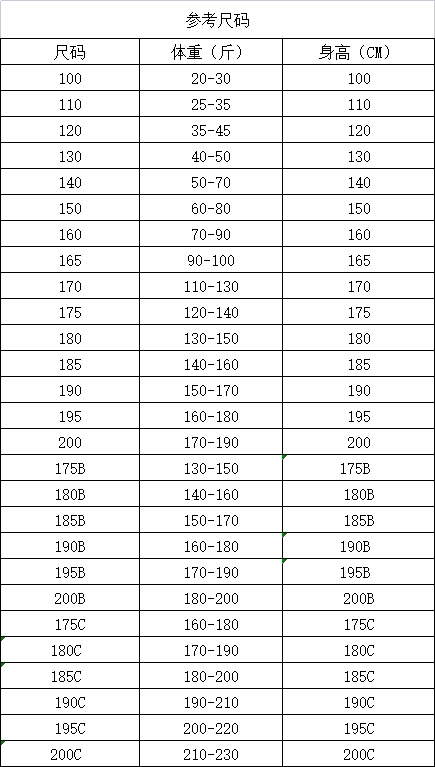 120cm130cm140cm150cm155cm160cm165cm170cm175cm180cm185cm19015