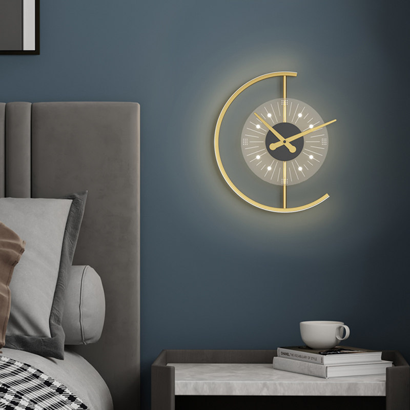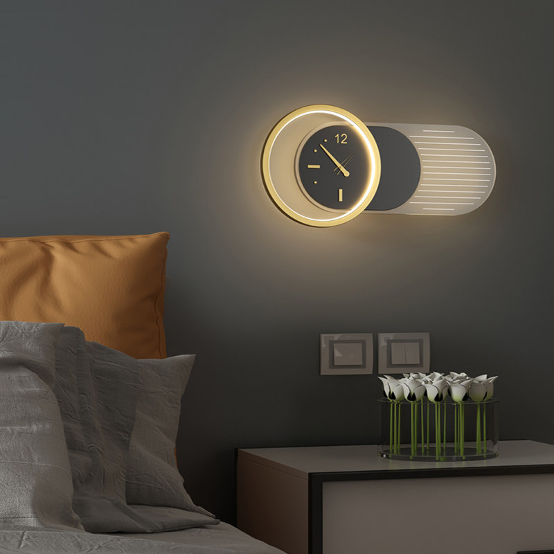 Wall lamp with clock Light luxury living room background wall Video wall Aisle wall lamp Nordic silent clock Bedroom bedside lamp