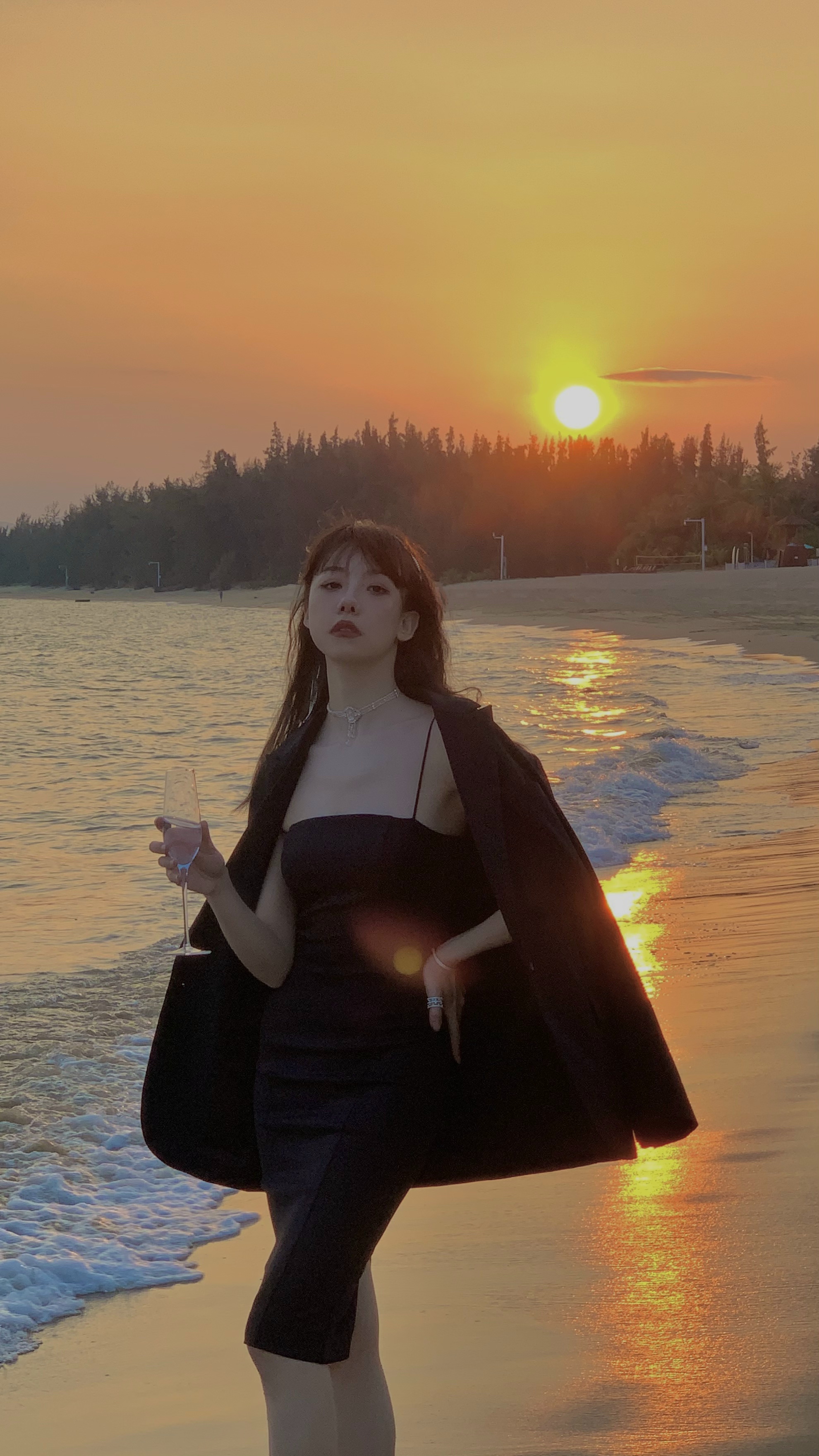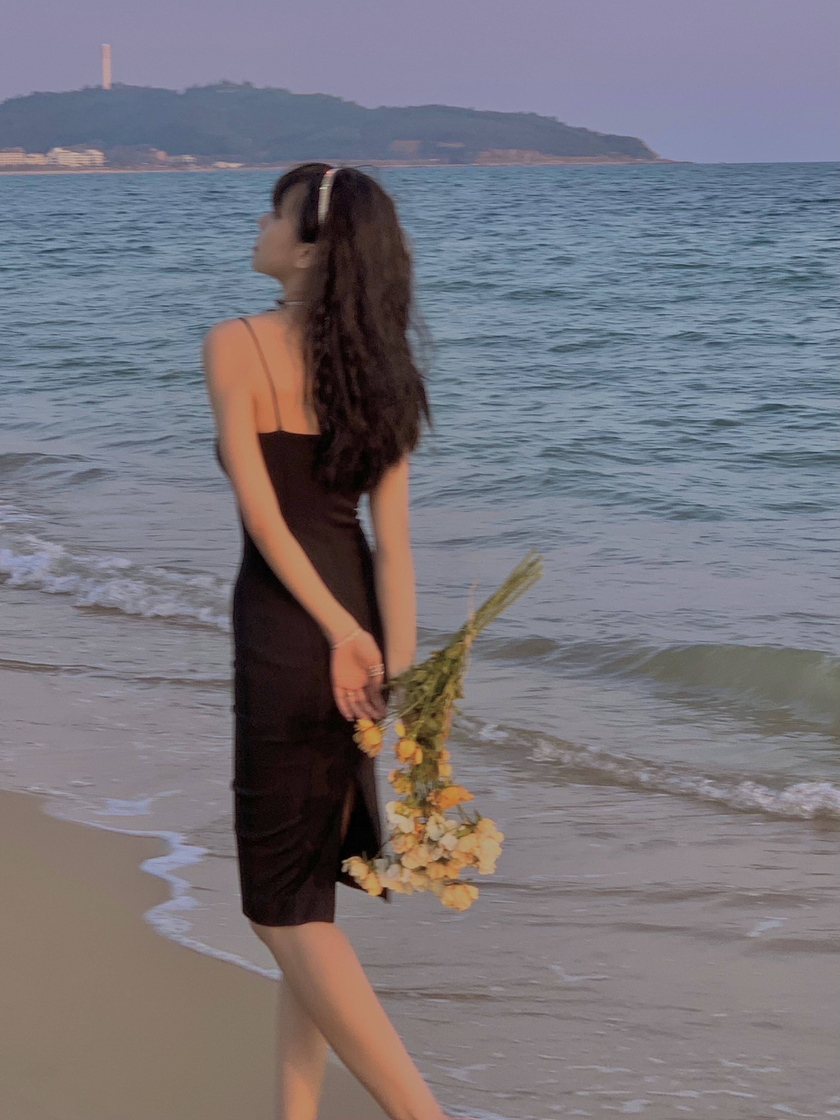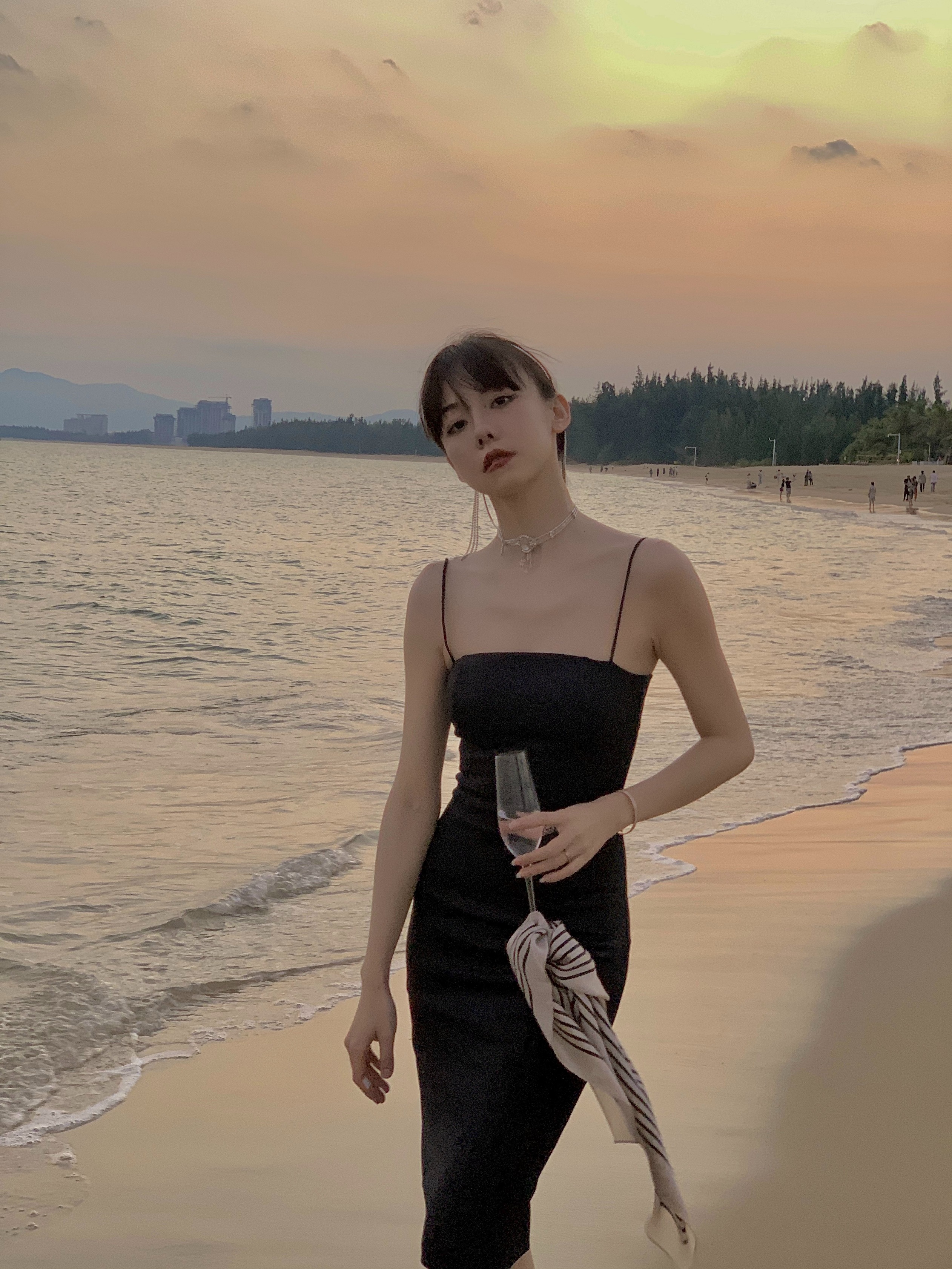 Haze Hezhi "Oath" French Retro Black Suspender Dress Sexy Hem Slit Slim Dress