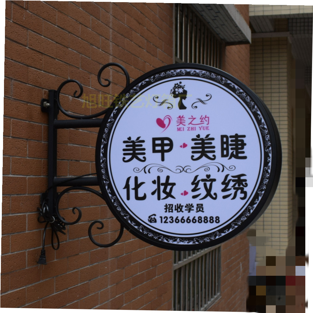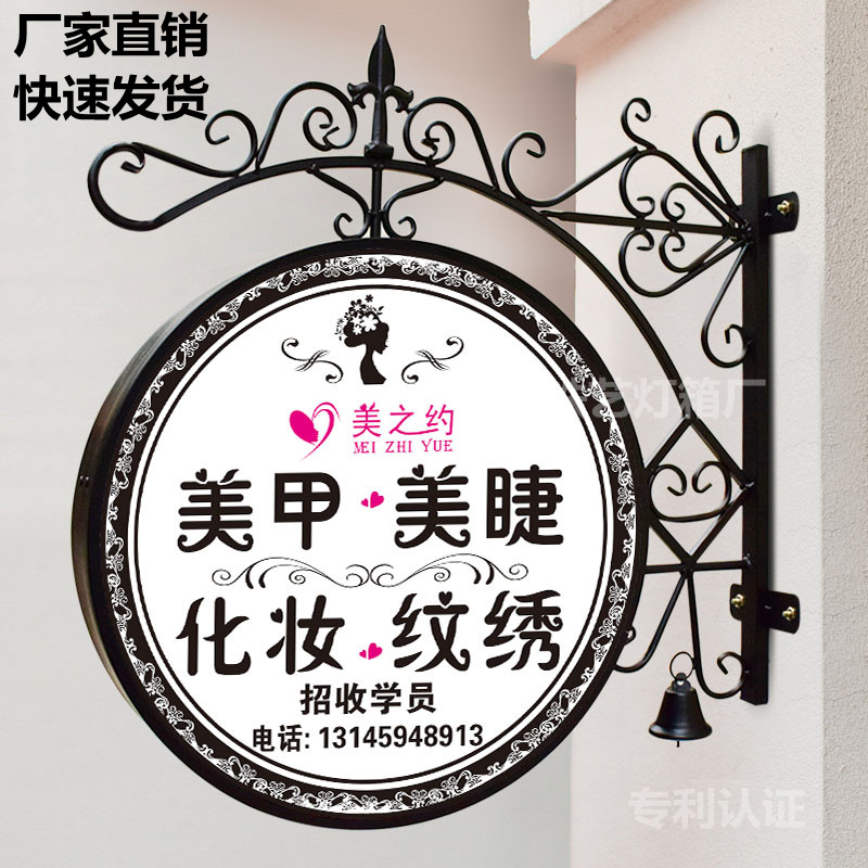 Outdoor shop side signboard hanging round led light box European-style wrought iron wall-mounted double-sided advertising light-emitting custom