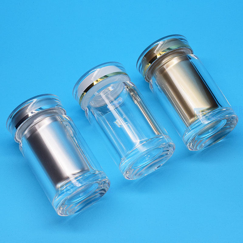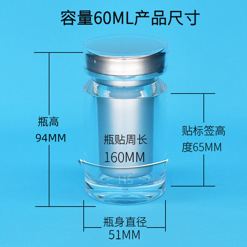 60ML transparent silver cover medicine bottle empty bottle acrylic bottle health product packaging pill powder Chinese medicine bottle 30 grain jar