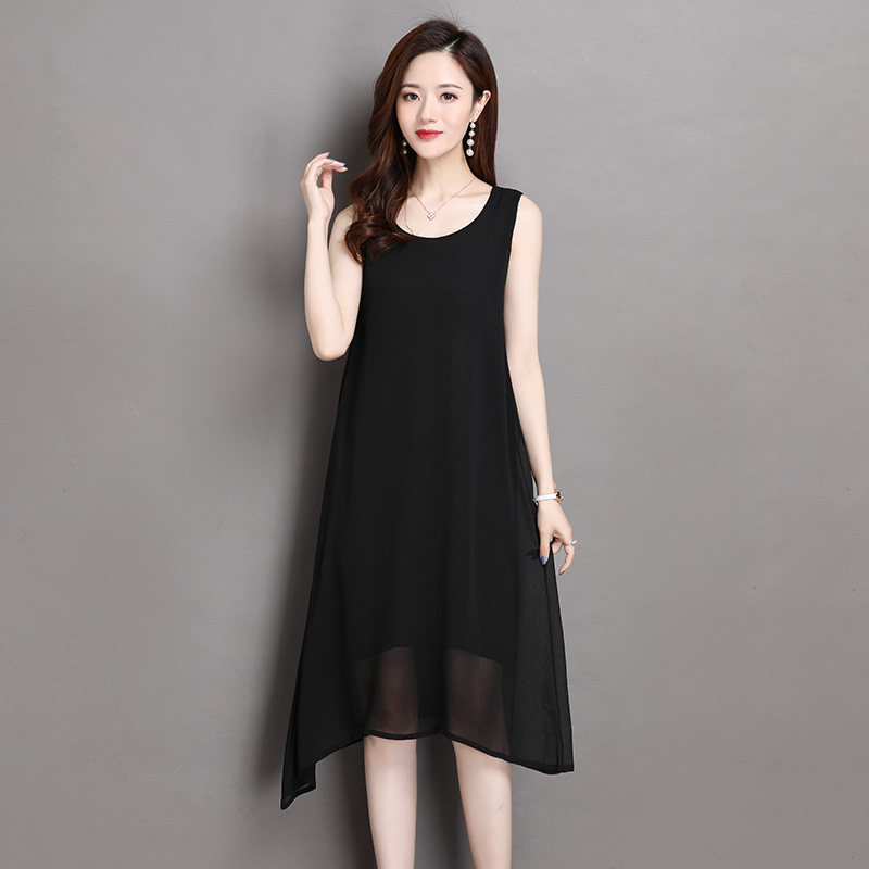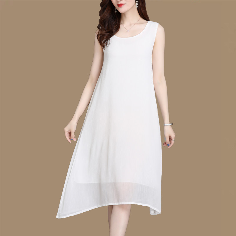 Chiffon dress women's summer loose mid-length sleeveless vest skirt spring and autumn bottoming skirt solid color inner suspender skirt