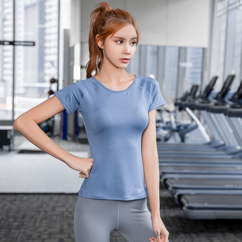 New Spring Summer Yoga Clothes Short Sleeves Women Fitness Suit Sports Blouse With Slim T-shirt Mesh Yarn Big Size Elastic Speed Dry Clothes