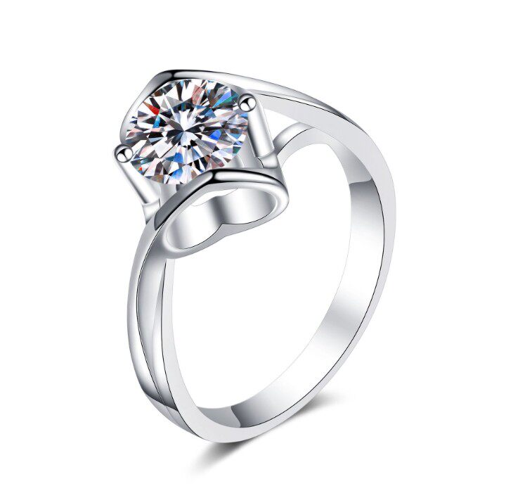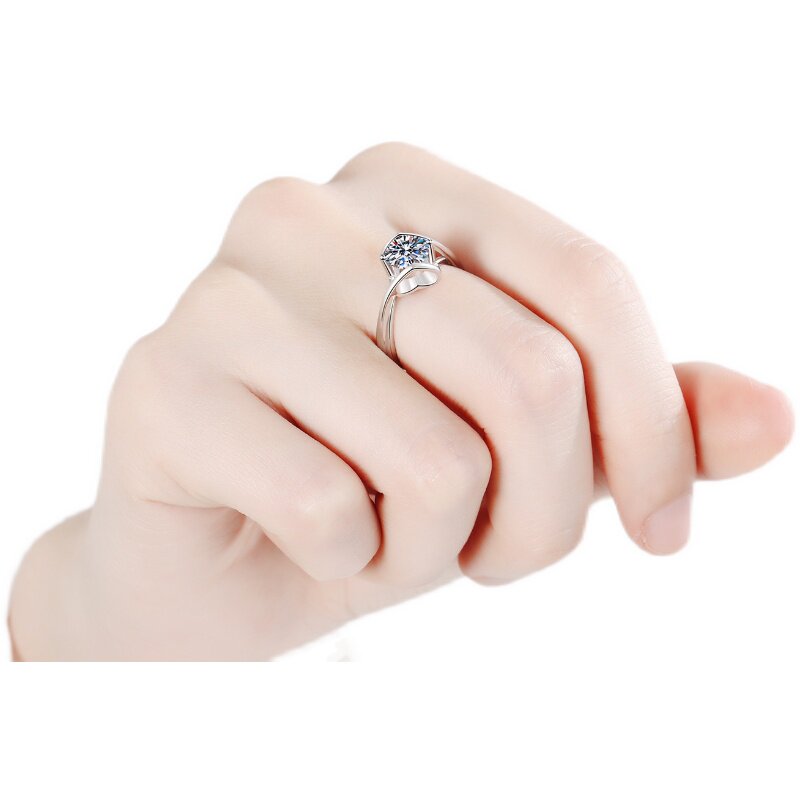 925 Sterling Silver Ring Women's Gold Plated Moissanite Ring Heart Inspiration Ring Angel Kiss
