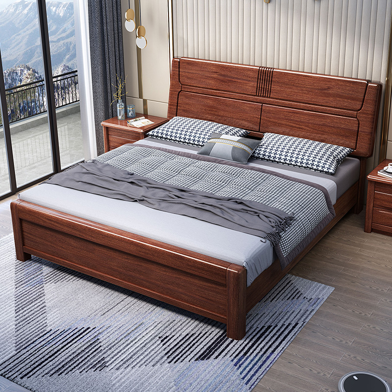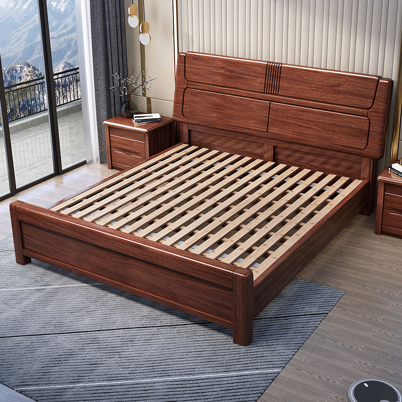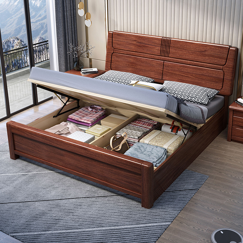 Chinese style solid wood bed 1 8 meters master bedroom double bed modern minimalist 1 5 meters walnut wedding bed storage bed economical