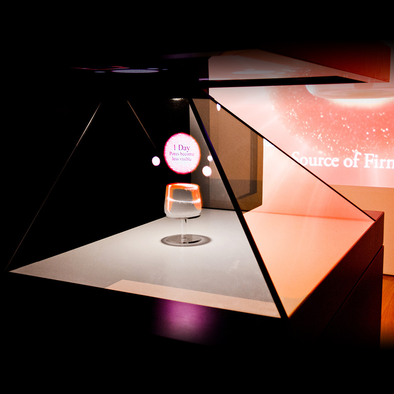 360 Degrees Naked Eye 3D Projection Display Cabinet Holographic Three-dimensional Solid Pyramid Touch Liquid Crystal Clear Glass Exhibition Cabinet