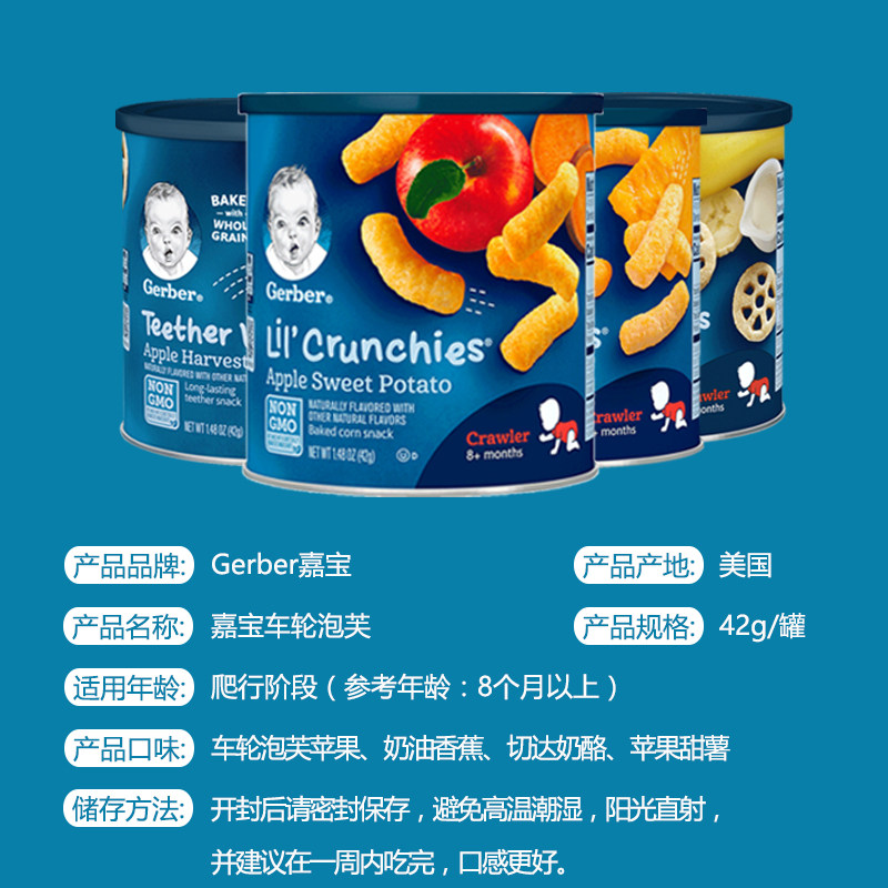 American Garbo original imported baby food supplement snack 3 segments star puff finger puff combination 42g*4