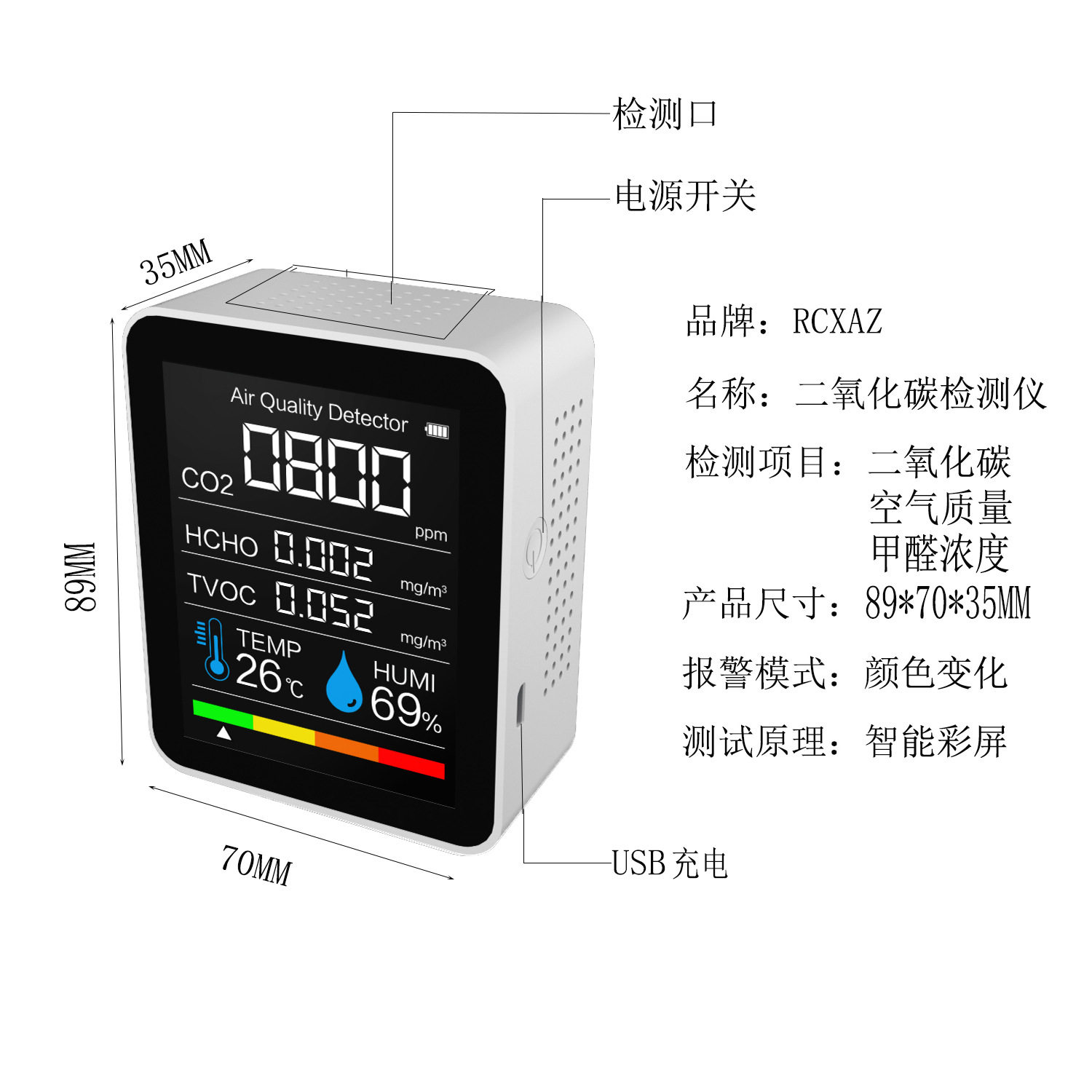 Carbon dioxide detector formaldehyde detection temperature humidity screen rotatable semiconductor sensor sound prompt