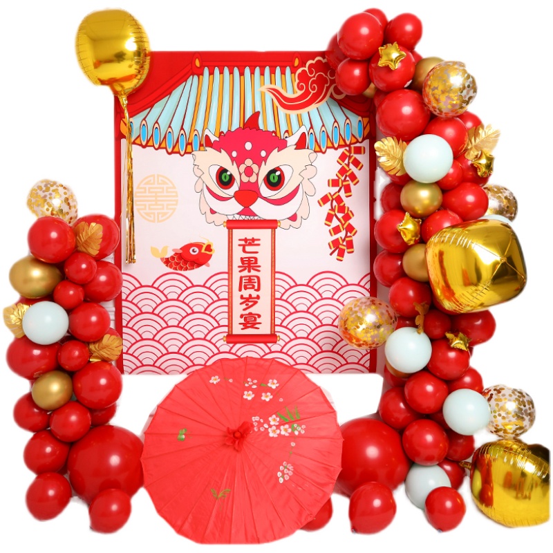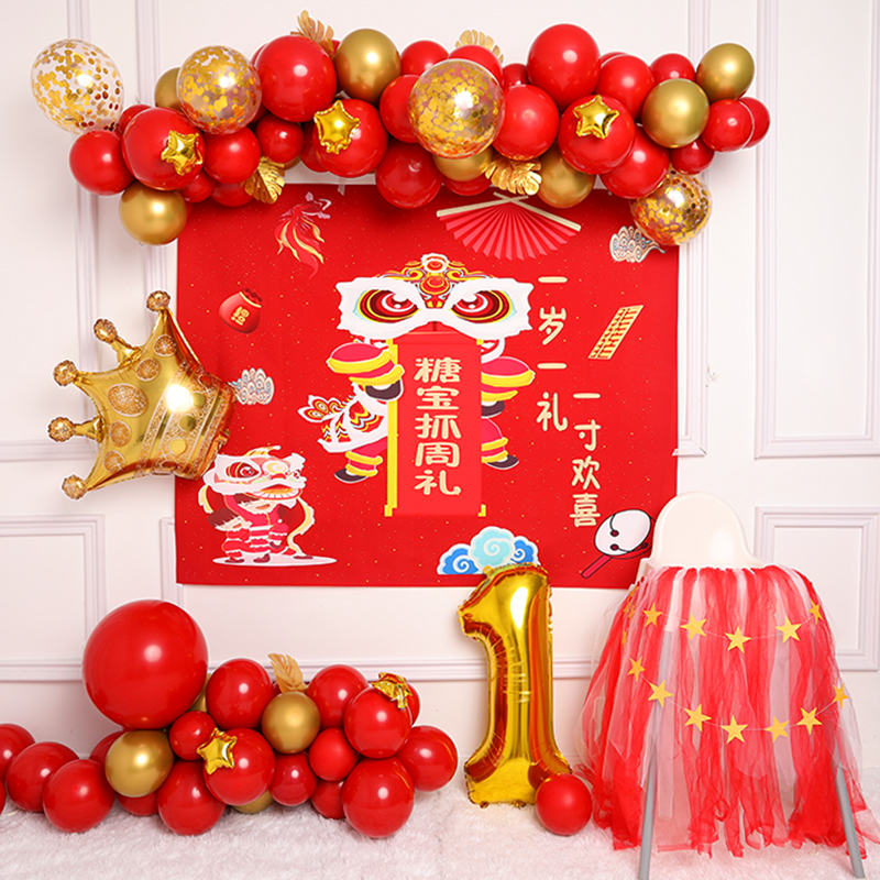 Baby catch week background wall birthday decoration scene layout a children's net red balloon package boy girl