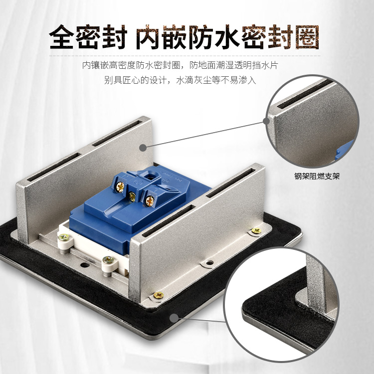 Hidden stainless steel ultra-thin embedded ground socket invisible flat waterproof ground five-hole mesh line ground socket