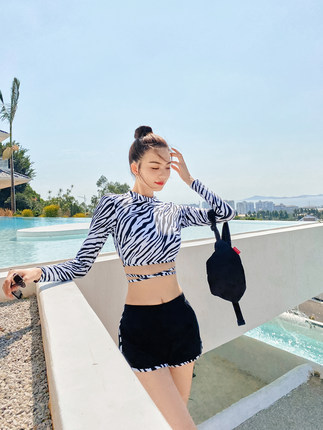 Vido new sexy swimsuit woman slim cover long sleeve three sets bikini small breasted flat corner spa swimsuit