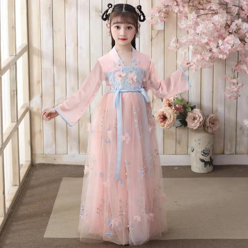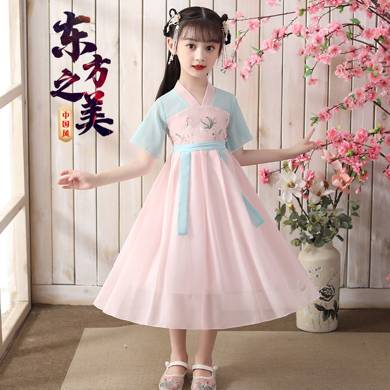 Children Handwear Girl Gutresses Chinese Wind 2022 New Summer Ancient Wind Skirt Superfairy Girl Dance Play Out