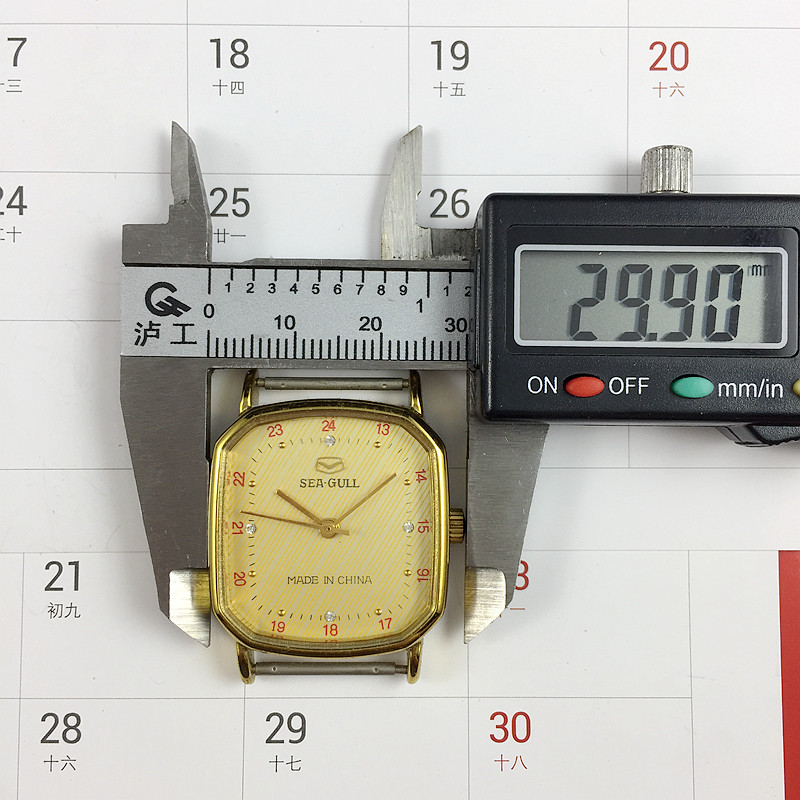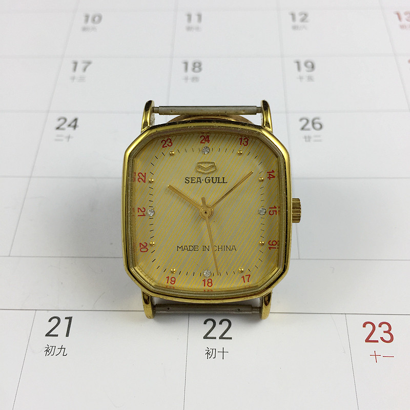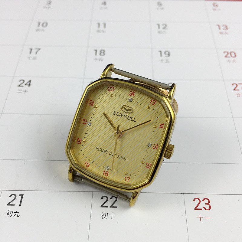 Original Clothing Stocks Tianjin Watches Factory Produce Seagull Deck Eight Corner Type Yellow Shell Yellow Surface Manual Mechanical Diameter 28 mm