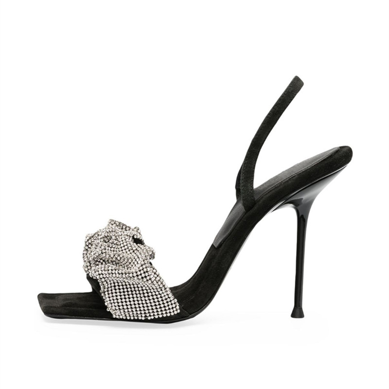 Spring/Summer 2021 New Super Fairy Square Head Slippers Word With Rhinestone Stiletto Heels Banquet Sexy Sandals