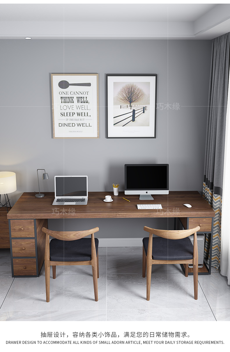 Nordic solid wood desktop computer desk modern minimalist long desk double office writing workbench one table