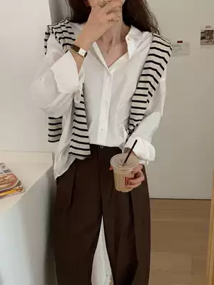 Spring solid color design sense niche vertical feeling stacked long-sleeved shirt women's spring and autumn temperament basic wear wild tops
