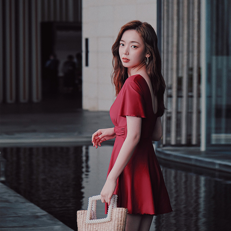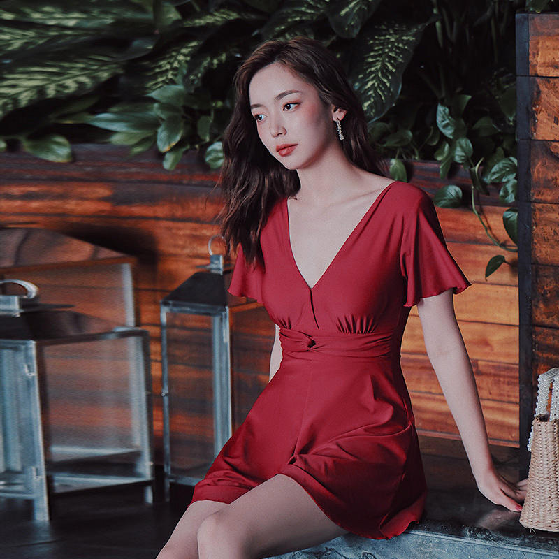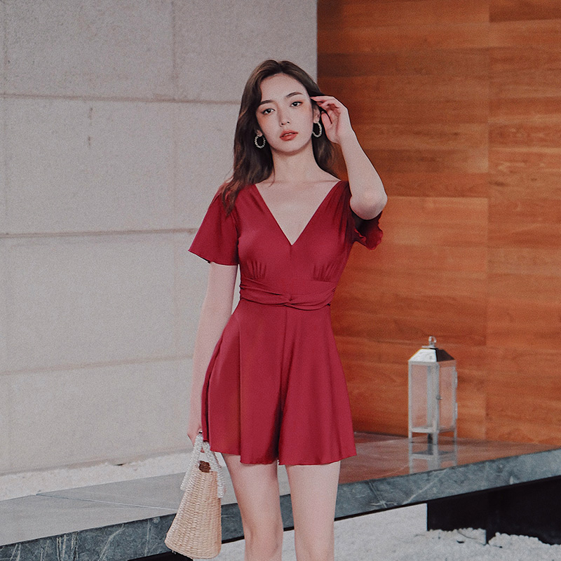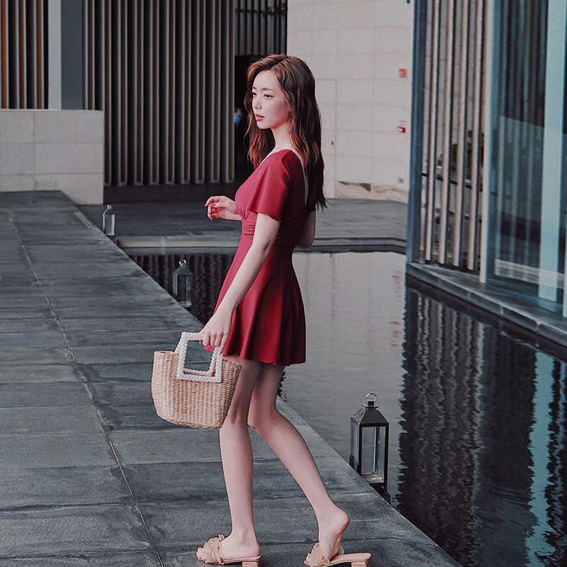 Yimeishan swimsuit female summer cover belly thin conservative one-piece small chest swimsuit 2021 new fashion red swimsuit