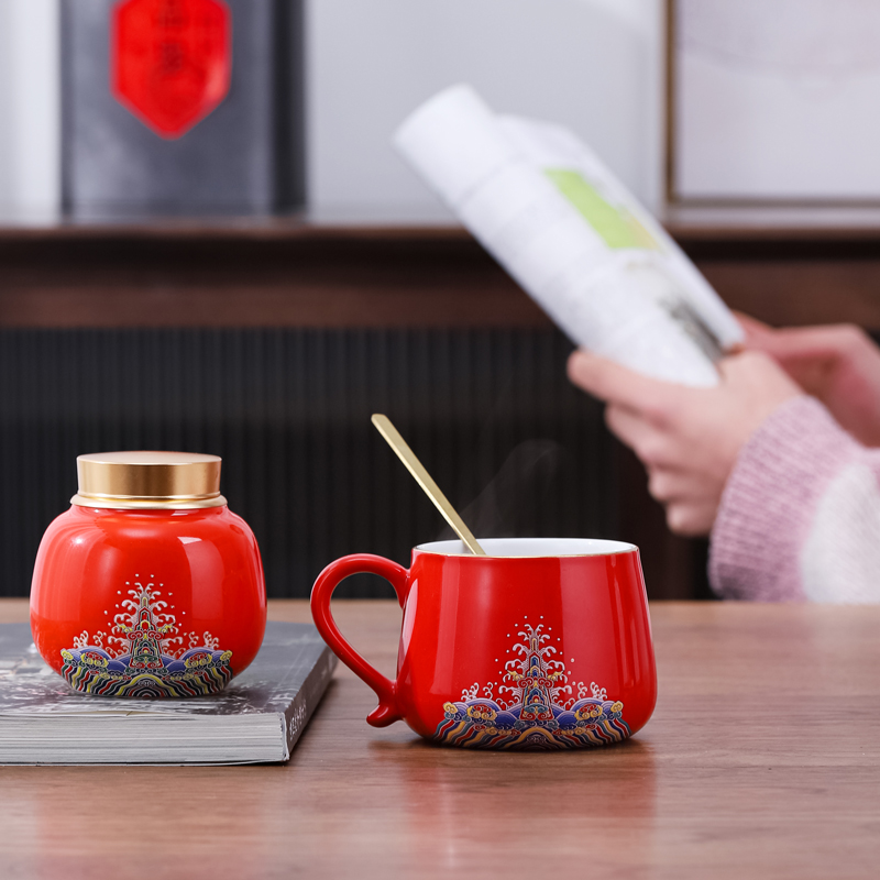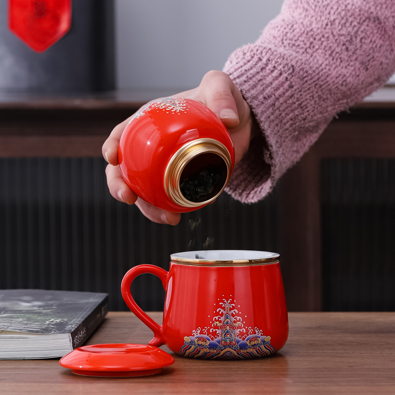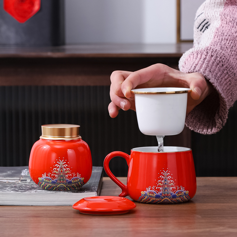 Ceramic Mark Cup With Lid Filter Home Office Tea Cup Tea Water Separation Lettering Gift Customize Logo