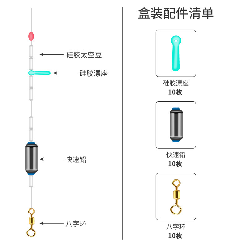 Ultra tight space bean suit combined full set of silicone special class fishing eight-character ring Drift lead leather fishing gear small accessories
