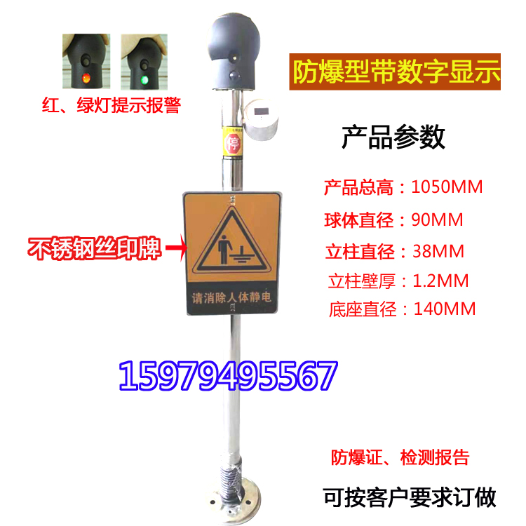 Explosion-proof type human car integrated with 202 material with PVC warning signs 202 material with warning signs PE Benan electrostatic relever with logo adhesive bending stainless steel wall-mounted wall-mounted belt sound