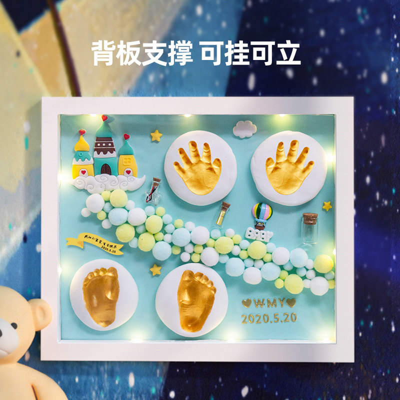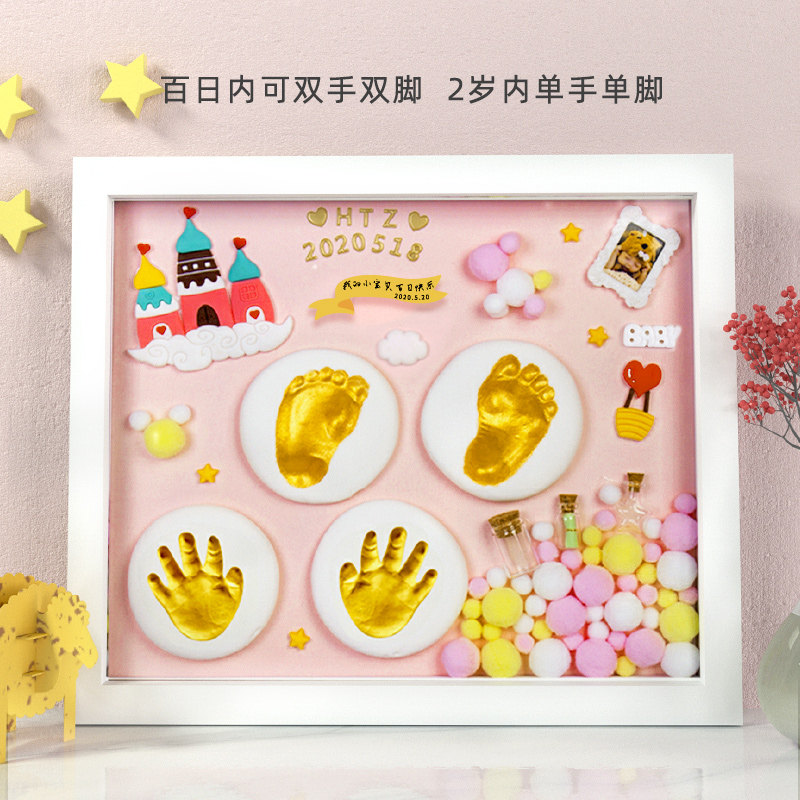 Baby hand and foot print mud hand and footprint permanent fetal hair souvenir photo frame newborn baby child full moon hundred days gift