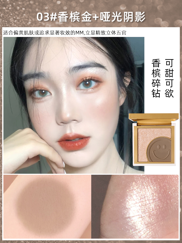 High-gloss repairing plate matte glitter face brightening nose shadow silhouette shadow dual-use three-in-one blush all-in-one plate