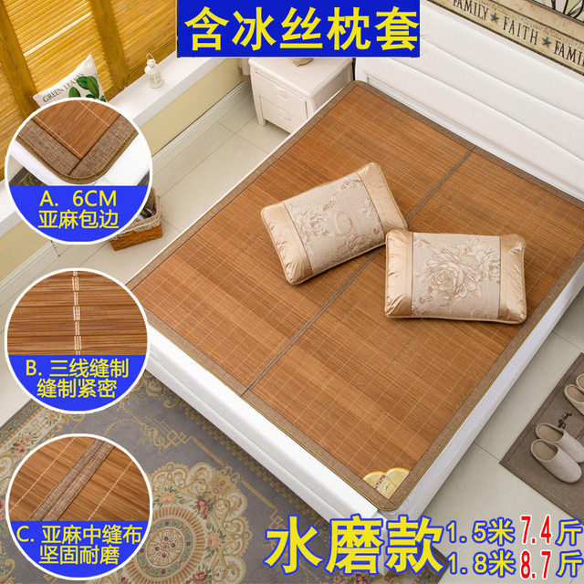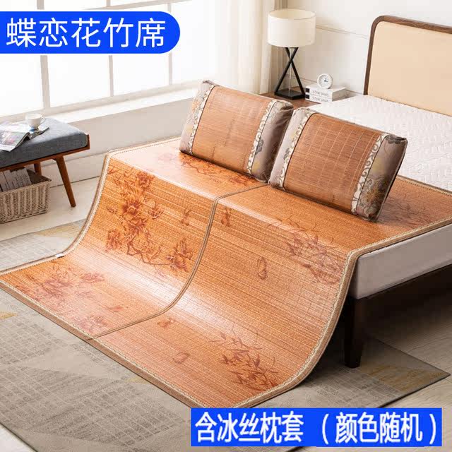 Summer bifacial folding bamboo mat bamboo mat carbonated bamboo mat 80cm1 rice 1 2 m 1 5 m 1 8m2m to send ice pillowcase