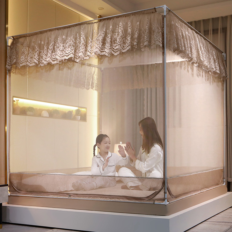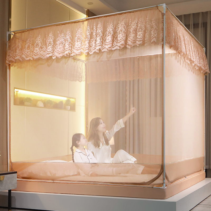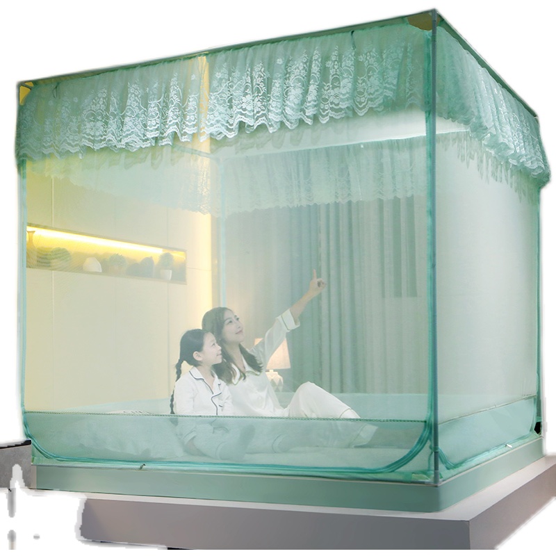 Yuanmeng mosquito net household 1 8m square top three-door bracket fixed bold and thickened 1 5m children's anti-fall model