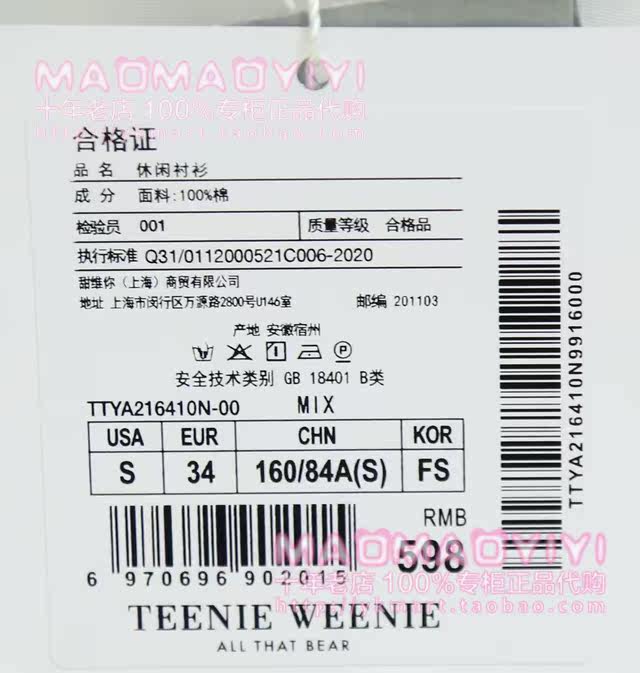 Limited time special price TeenieWeenie special cabinet 2021 summer casual shirt TTYA216410N 598