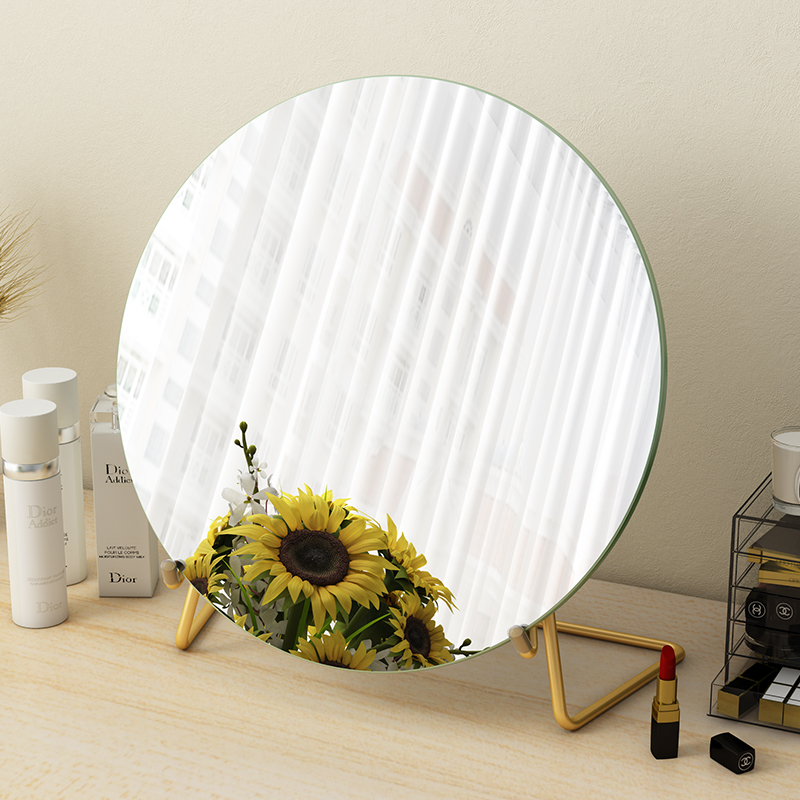 Round Makeup Mirror Desktop Desktop Mirror Ins Nordic Big Princess Mirror Mesh Red Makeup Cosmetic Mirror Bedroom