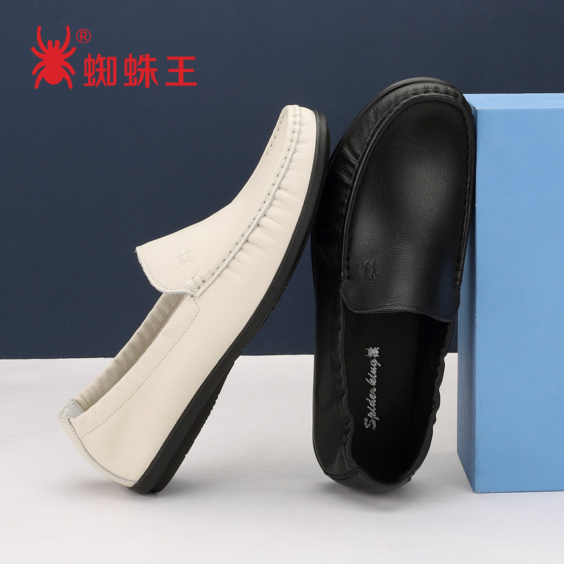 Spider King Spring Fall Soft Leather White Casual Leather leather Soft bottom bean Bean Shoes Men Fall Without Shoulder Strap Driving Shoes Red