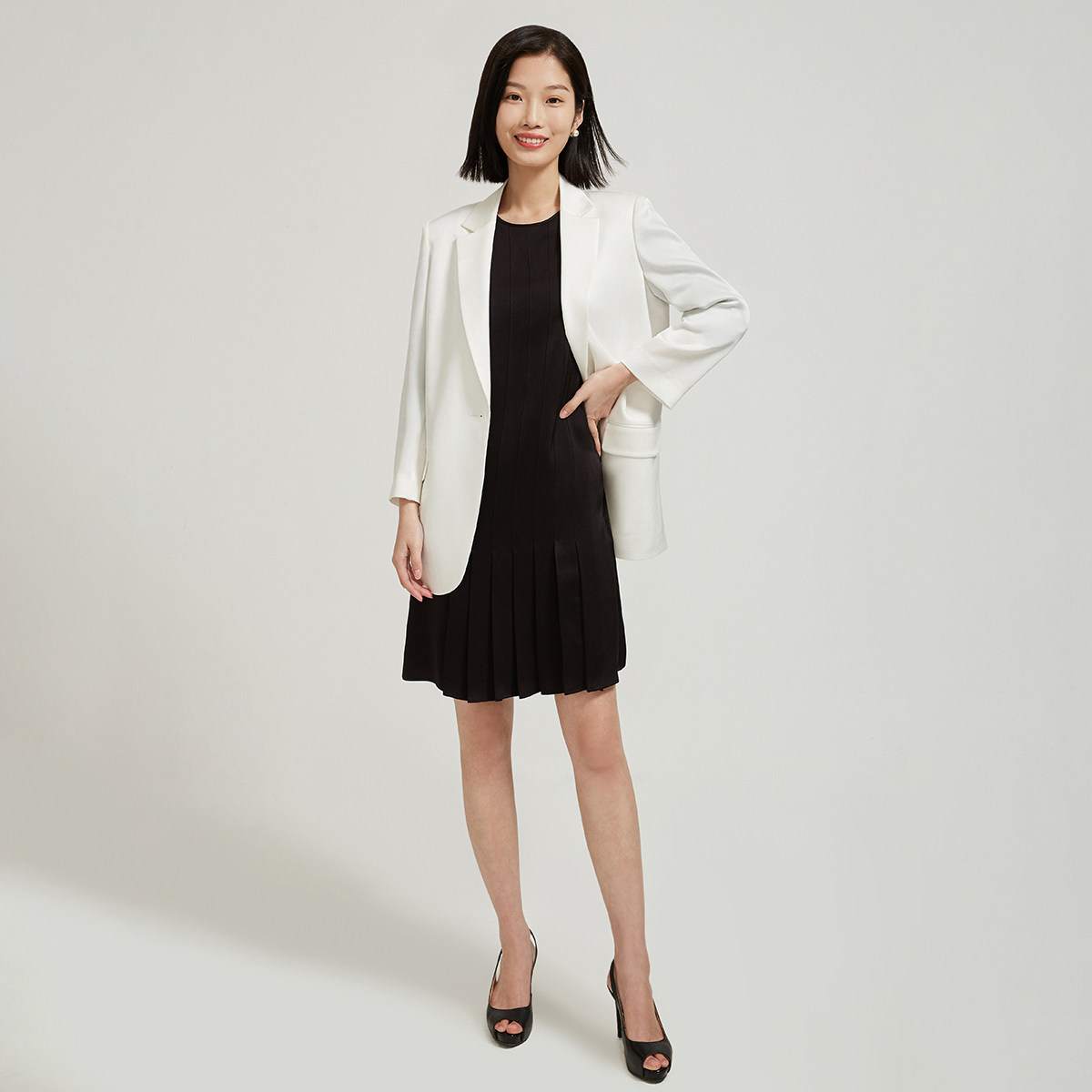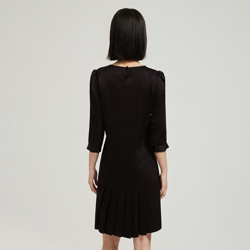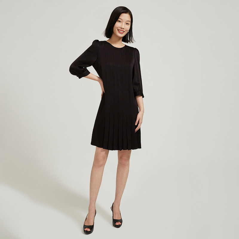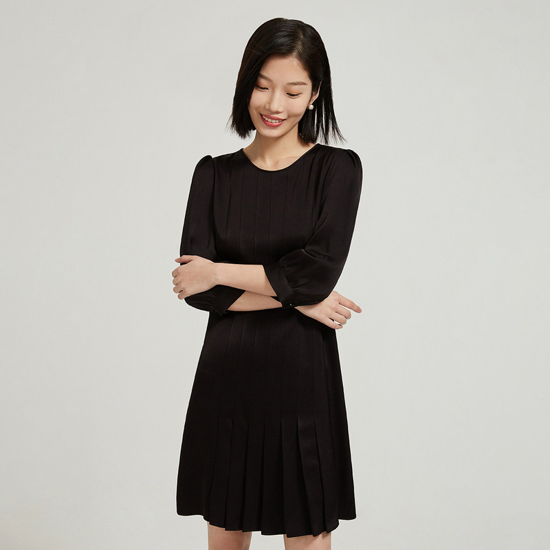 The mall with navi to zhen 2022 intellectual pressed pleat decoration small black dress dress women autumn autumn