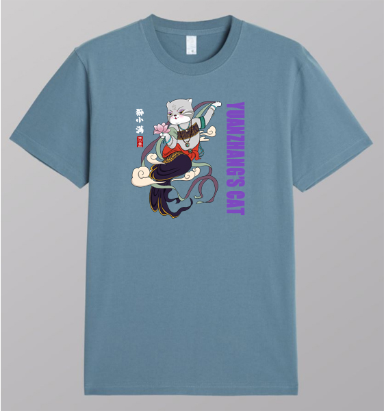 Cute Darling Rabbit middle country wind hand painted sky illustrator pure cotton printed round collar Summer 100 lap short sleeve t-shirt