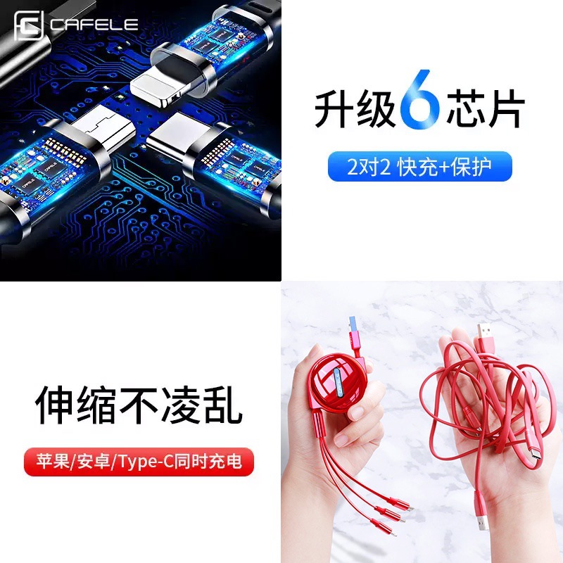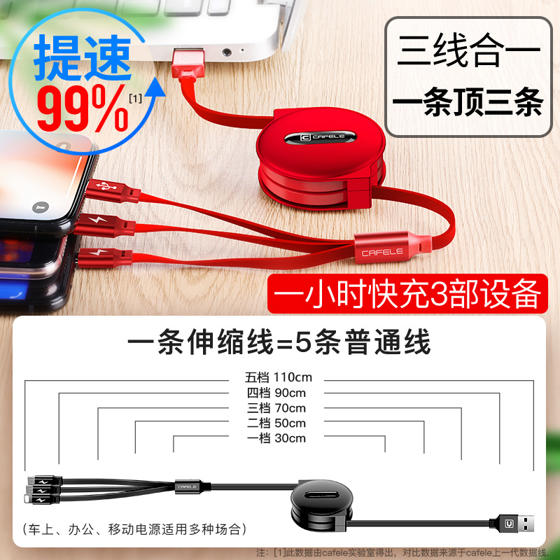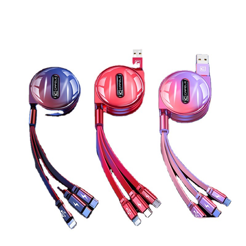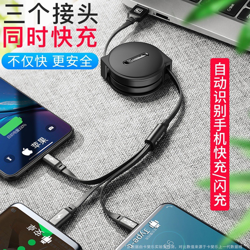 Three-in-one data line charging wire instrumental one drag triple quick charging phone bulls quick on-board Apple multifunction two-in-one flash charge Android flex multipurpose 3 Applicable Huawei 5 flush with three heads
