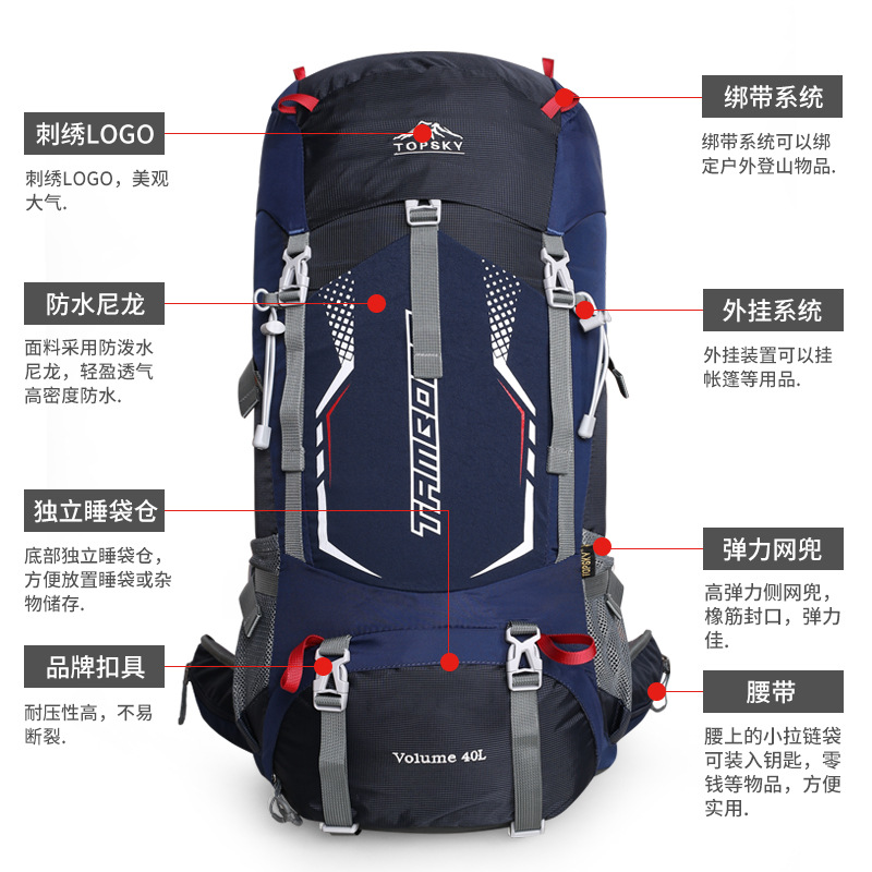 Foreign trade new shoulder large capacity waterproof rain cover professional outdoor sports hiking camping bag 40L
