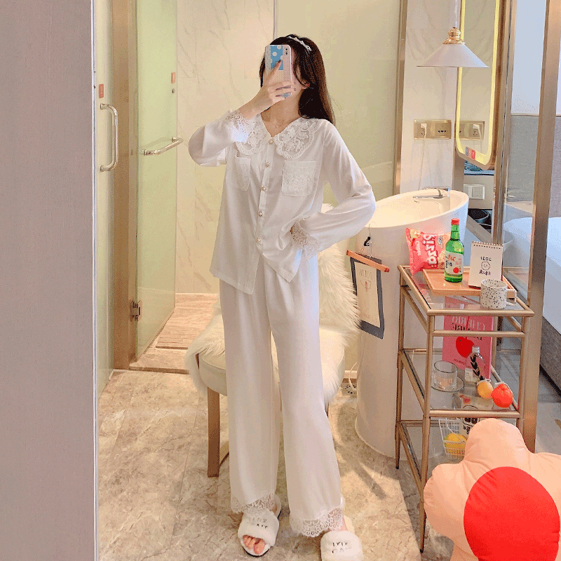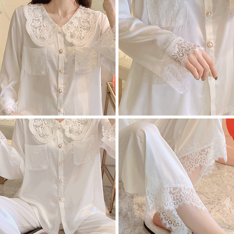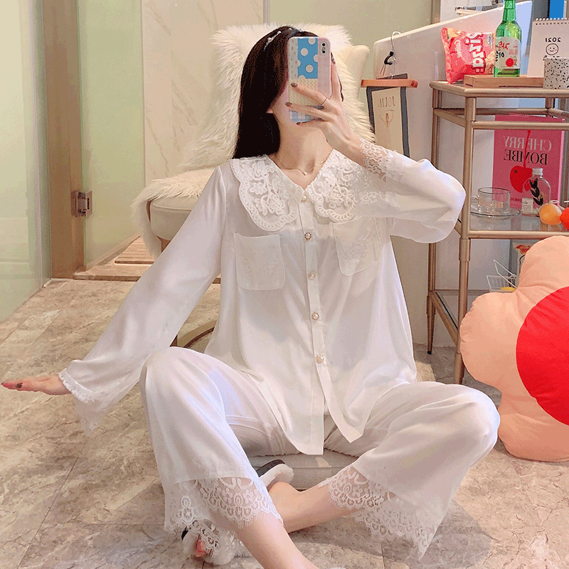 Princess Wind Doll Collar Pyjamas Woman Spring Autumn Pure Cotton Long Sleeve White Cute Summer Palace Home Conserved Two Style Suits