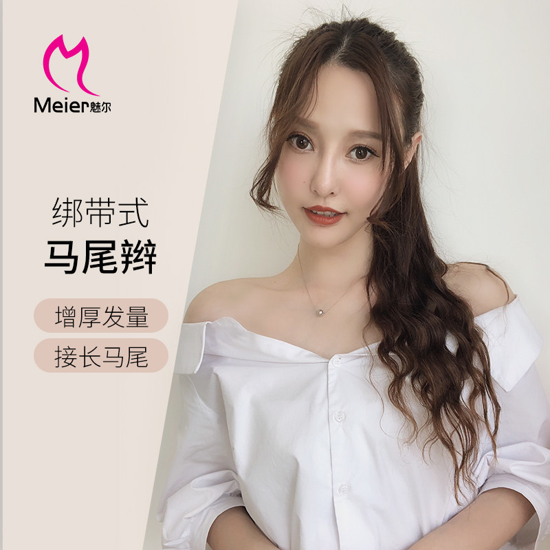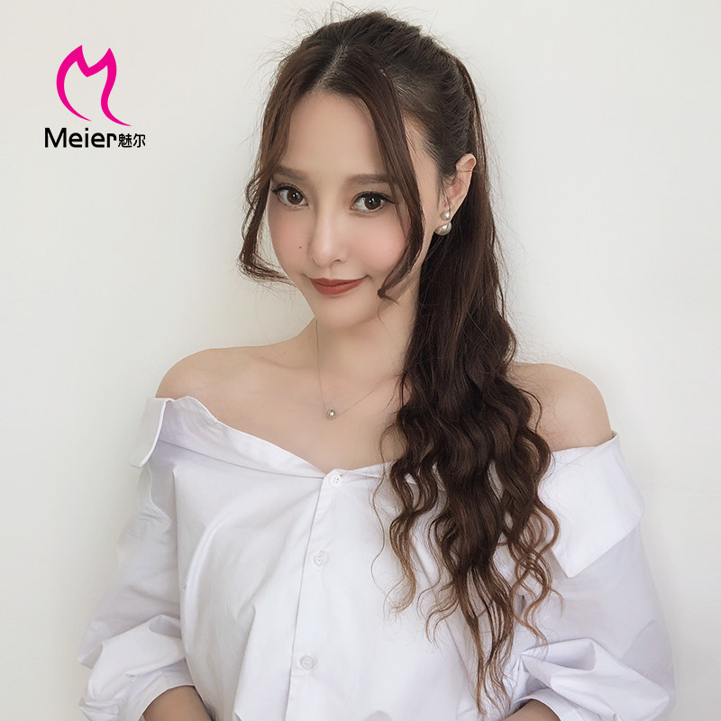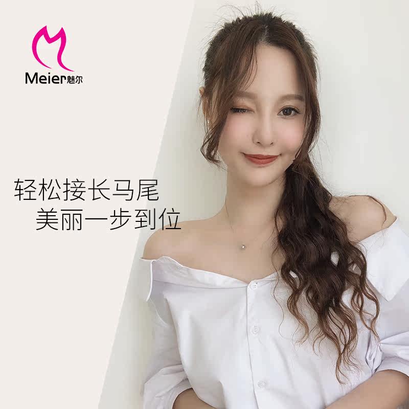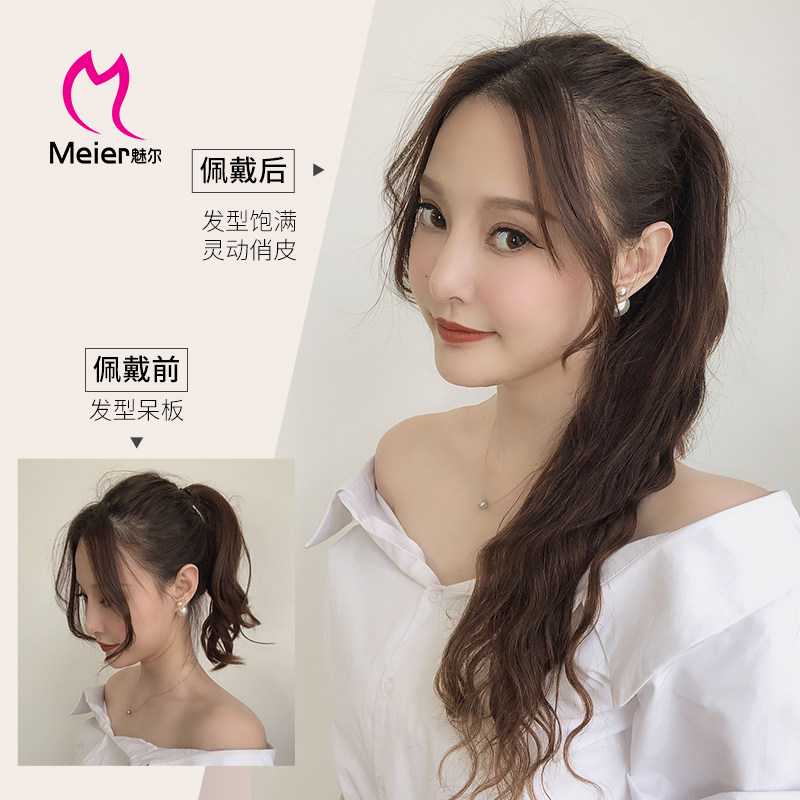 MEIER real hair curly ponytail strap French lazy wooden horse curly ponytail real hair long hair ponytail