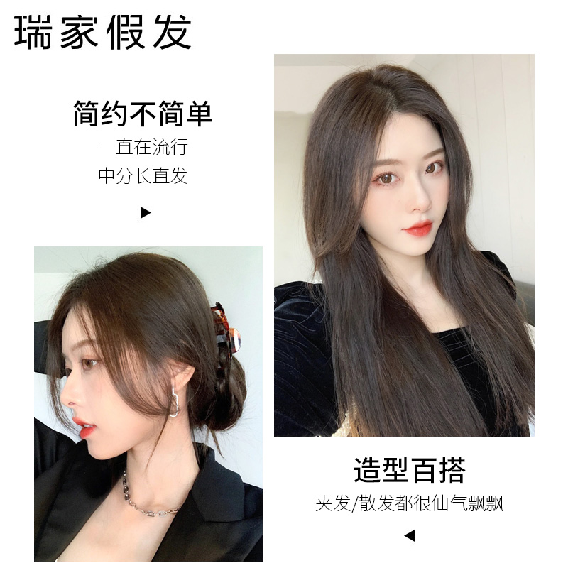 Ruijia wig Female long hair Real hair medium distribution type full head cover Summer simulation full real hair Lace natural wig cover
