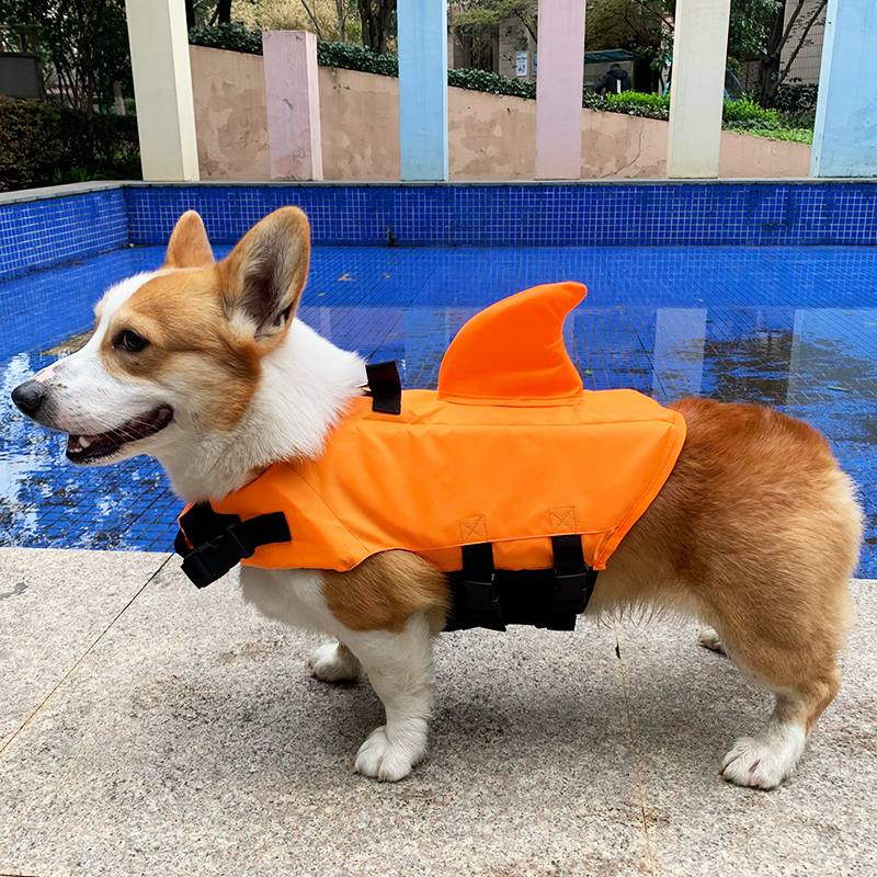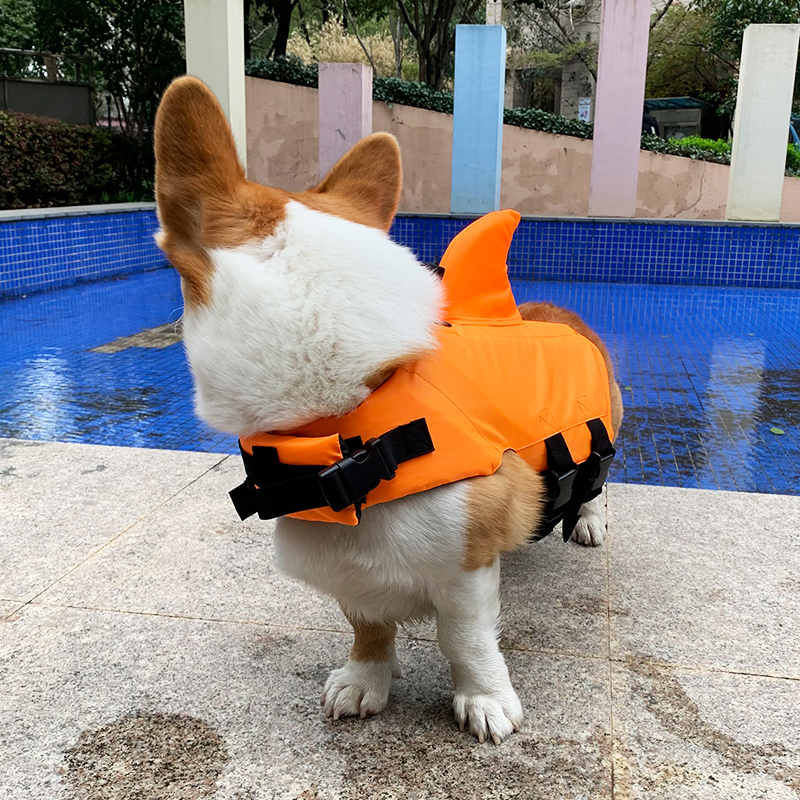 Dog lifesaving buoyancy suit pet swimming safety suit dragon tail shark whisker folded corgi law fighting golden retriever size dog